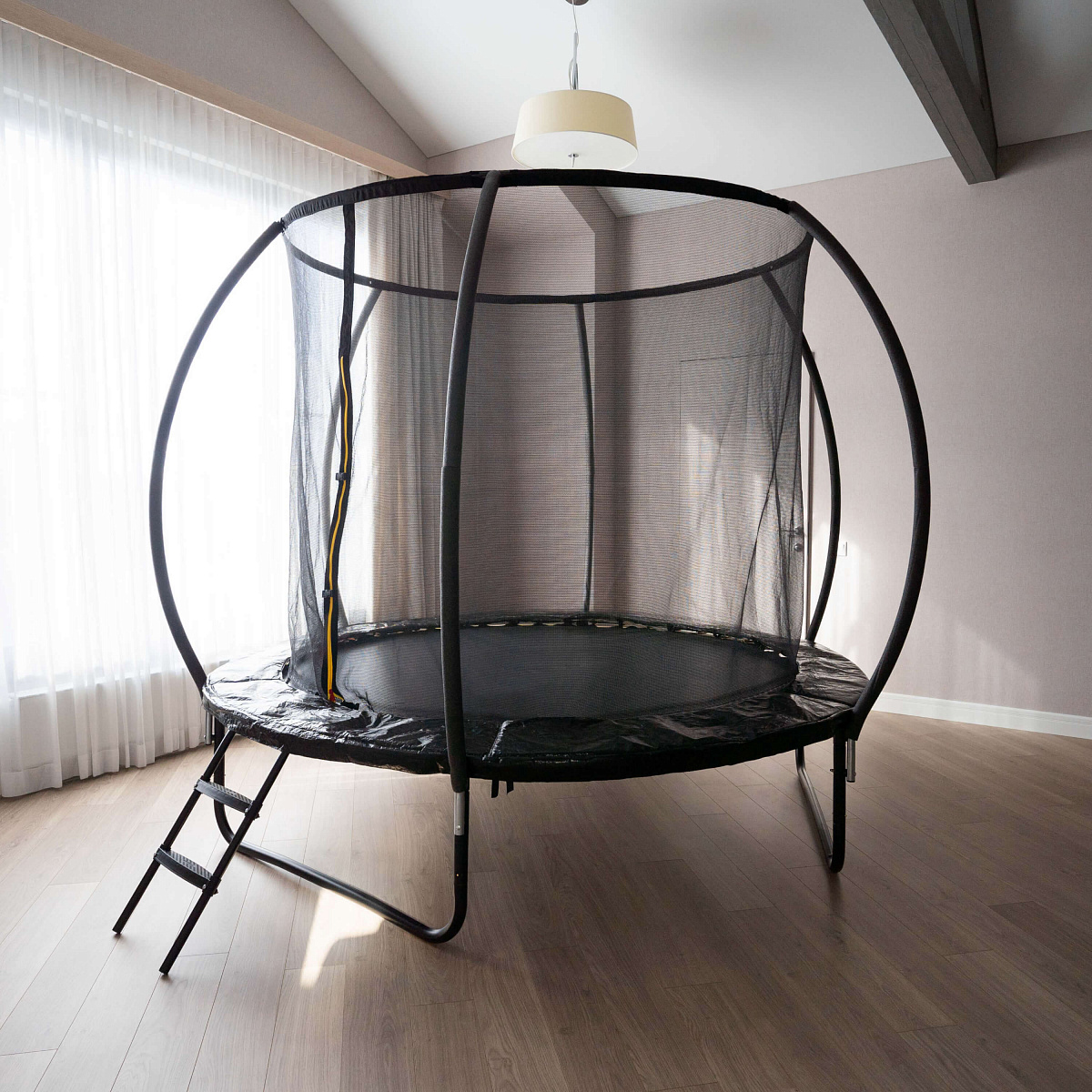Прочная высокая сетка, тщательно натянутое упругое полотно, закрытые пружины гарантируют максимальную безопасность во время джампинга, качественные материалы обеспечивают долговечность, износостойкость и надежность конструкции.
