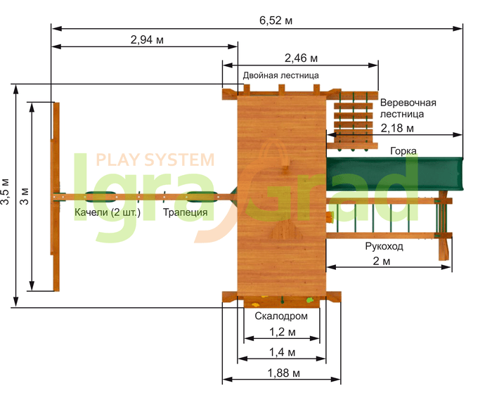 Габариты игрового комплекса для детей составляют: