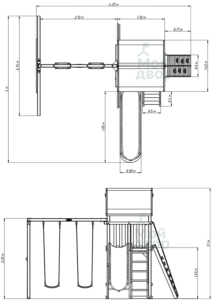- - длина ската горки 2650 мм;