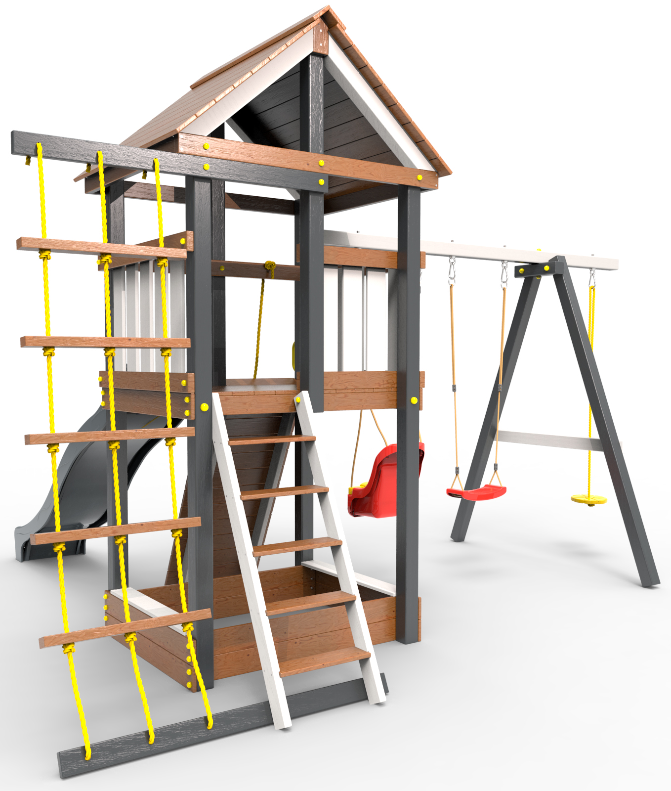 Комплектация модели выполняется по вашему желанию. Древесина пропитана высококачественными экологичными материалами (антисептиками), и покрашена..