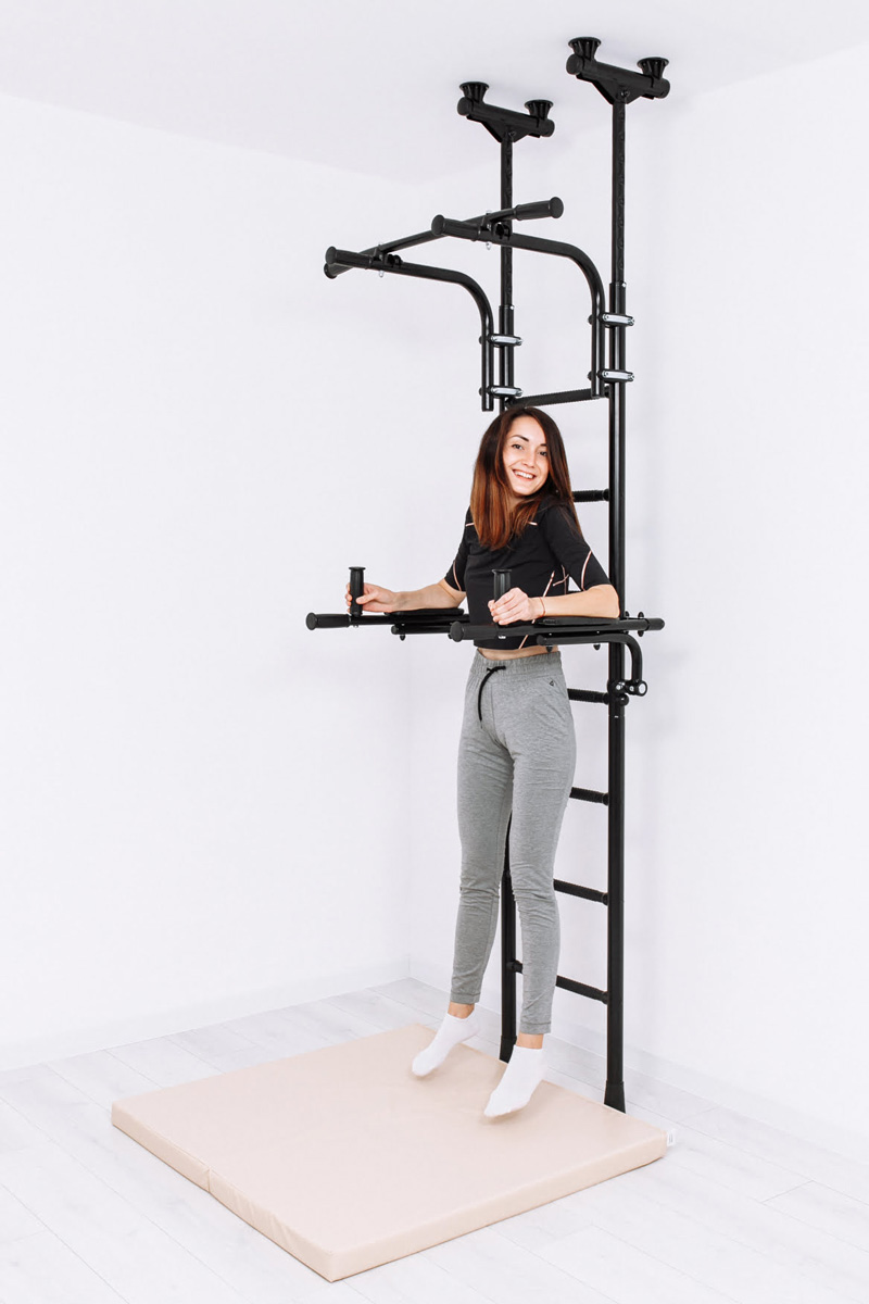 Брусья откидные подойдут пользователям, которые любят рациональность и экономию пространства. После упражнений они откидываются в вертикальное положение и не мешают занятиям на другом навесном оборудовании и не занимают место в помещении. Брусья снабжены четырьмя прорезиненными рукоятями и подлокотниками.